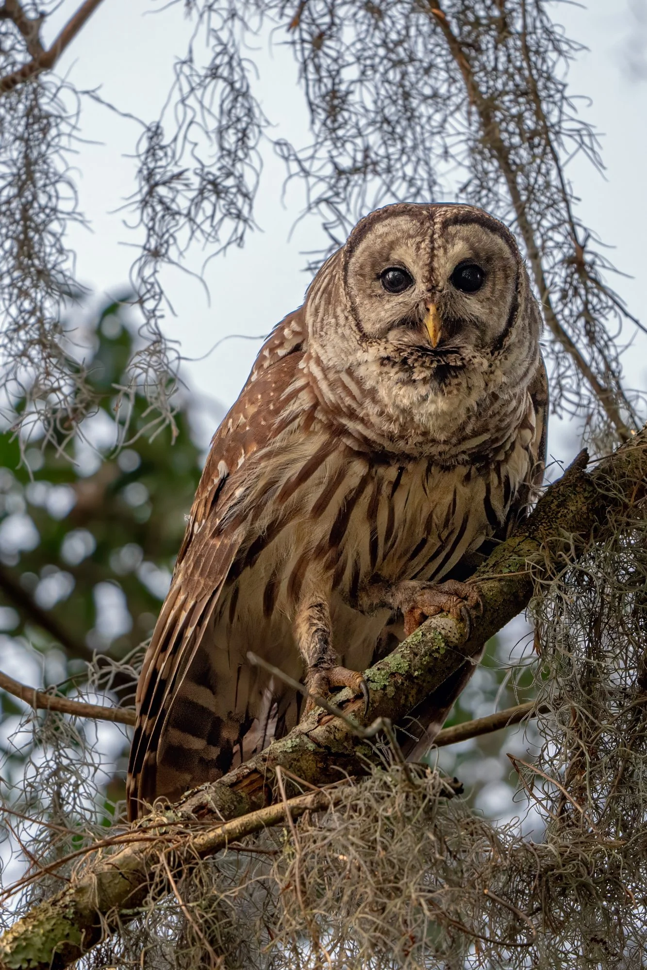 From the moment we started our hike, the trail promised an encounter with Florida's diverse wildlife, and it did not disappoint. Though the elusive black bears remained out of sight, the trail was teeming with a variety of other incredible wildlife. We spotted alligators lurking in the marshes, great egrets gracefully navigating the waters, and wood ducks adding a splash of color to the surroundings. Raccoons peeked from the tree lines, while ospreys and glossy ibises soared above. The area was also a haven for bird watchers with sightings of white ibises, red-shouldered hawks, re-bellied woodpeckers, Carolina wrens, northern parulas, and plenty of vibrant northern cardinals. A highlight of the trip was the multiple encounters with barred owls, which I had long hoped to photograph.